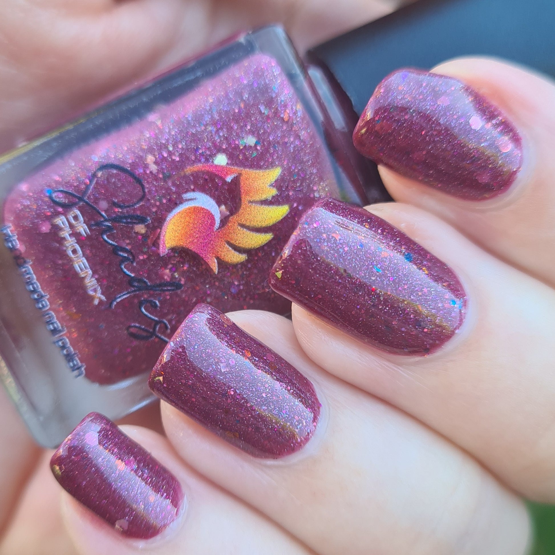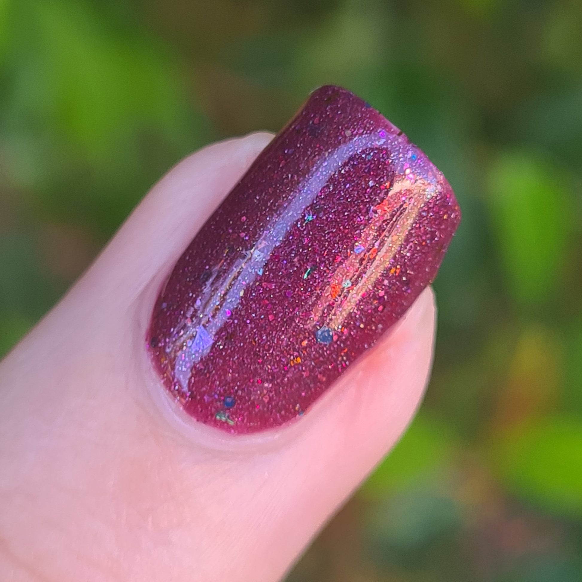 Feelin' Crabby is a fiery berry-toned jelly full of holo sparkle, flakies, and colourful glitter bits that scuttle across your nails like the iconic red crab migration